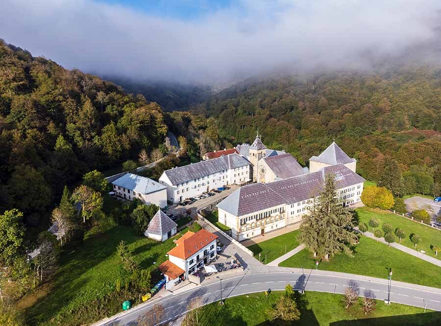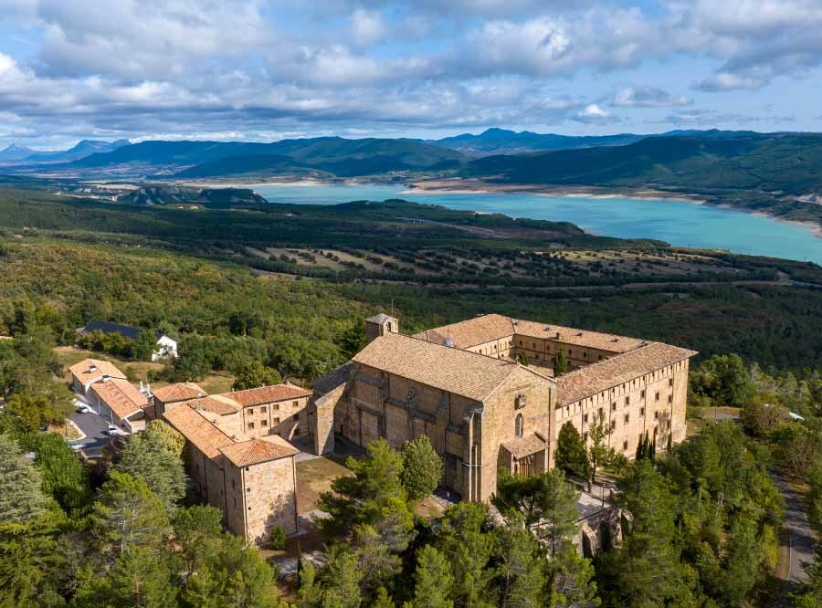 Un conjunto monástico histórico con una de las portadas románicas más importantes de Navarra. Su ubicación, en lo alto de la montaña, ofrece vistas increíbles del embalse de Y