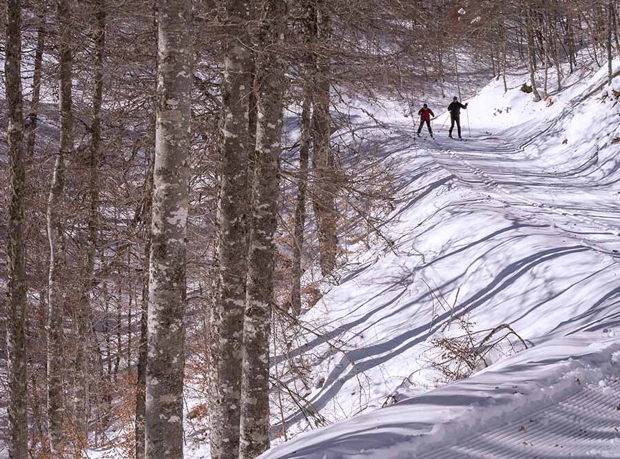 Disfrutar del esquí de fondo en la zona de Larra-Belagua, un entorno invernal incomparable del Pirineo Navarro. Sus circuitos transcurren entre montes blancos, laderas suaves y amplios paisajes abiertos, ofreciendo recorridos tanto para quienes se inician como para esquiadores con experiencia.
